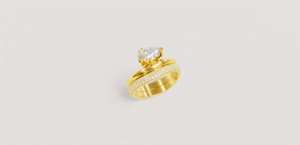 Elegant ring set featuring a pear-cut solitaire centerpiece paired with a sleek diamond accented matching band , the combination of bold brilliance and fine detailing creates a timeless, luxurious look.