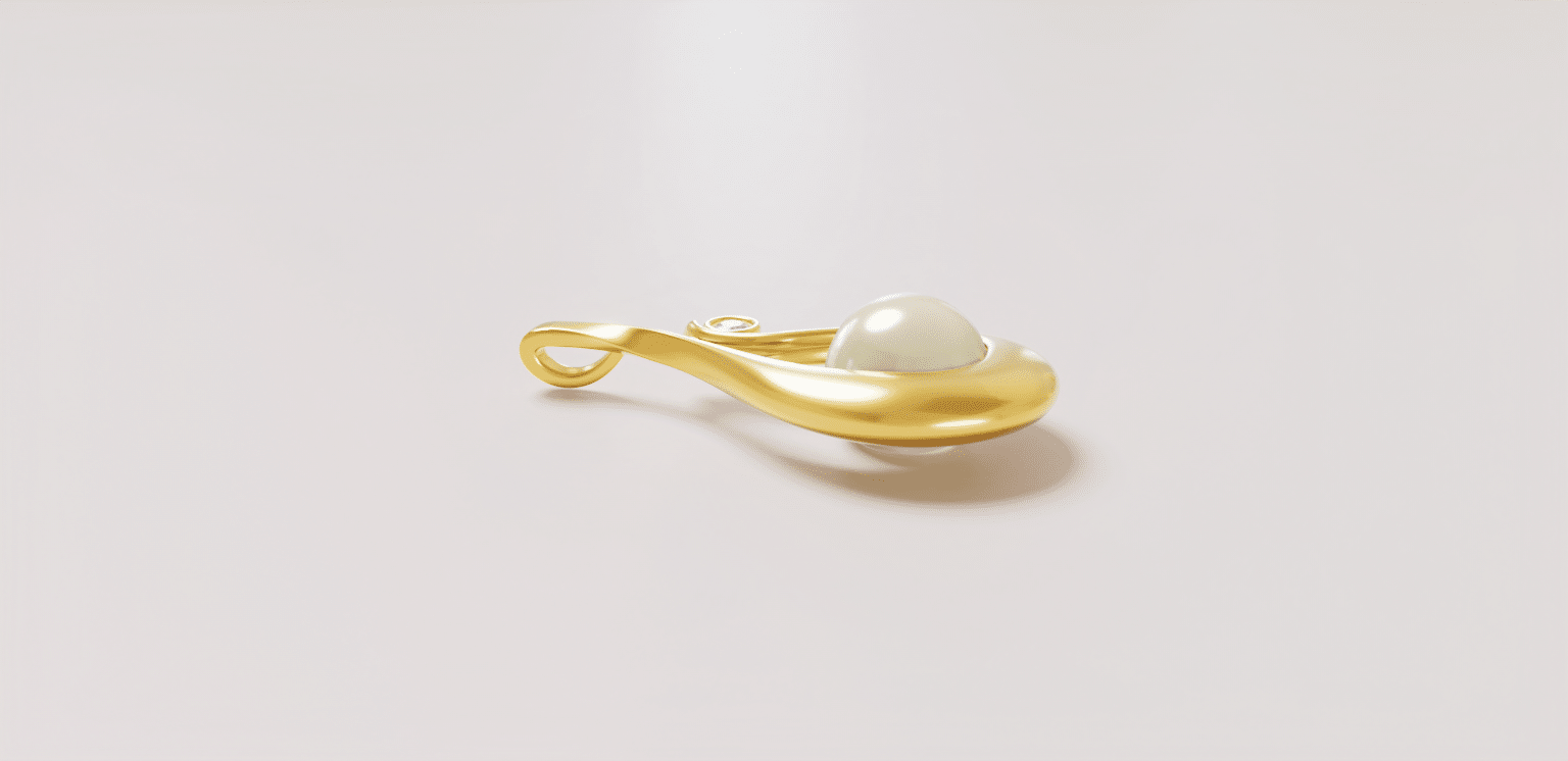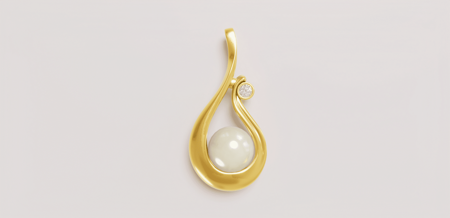 Elegant gold pendant featuring a smooth teardrop design, adorned with a lustrous pearl at the center and a sparkling round diamond accent at the top.