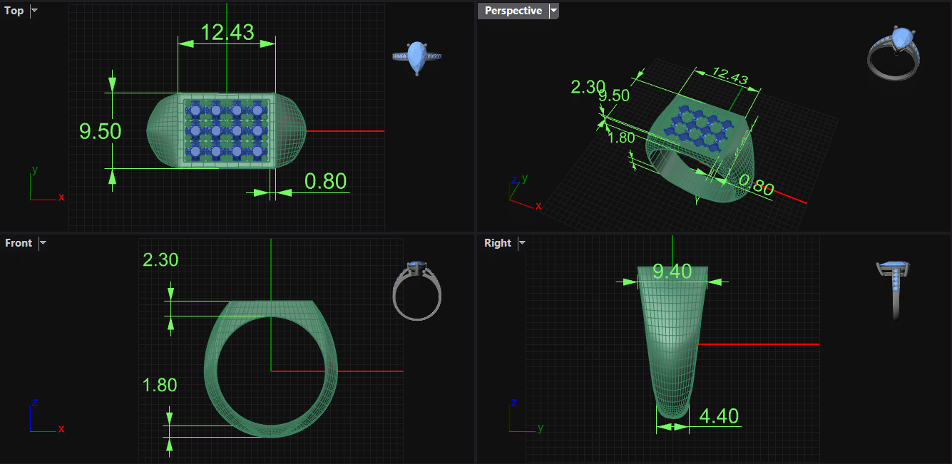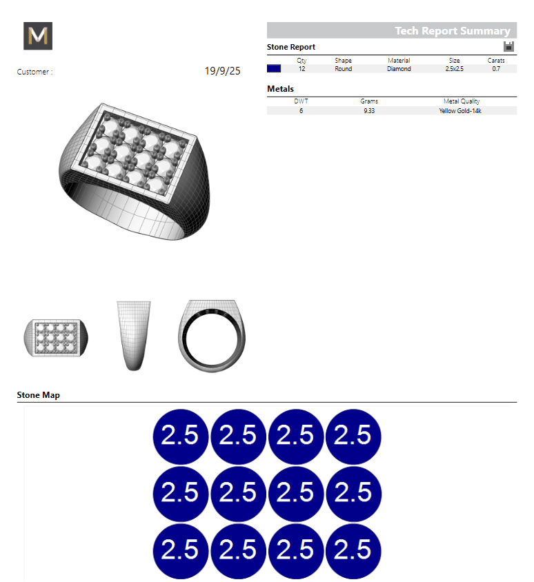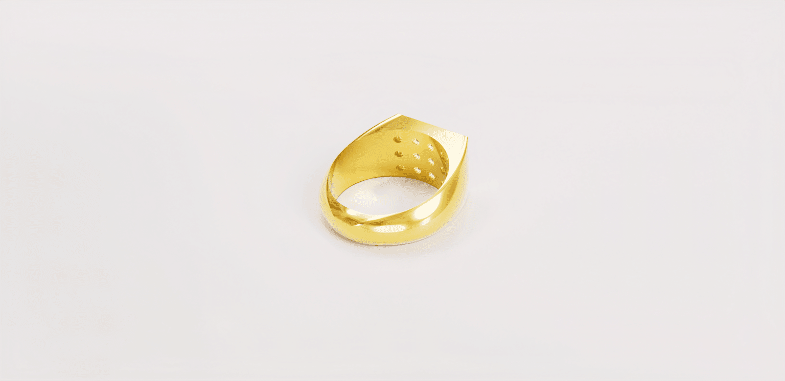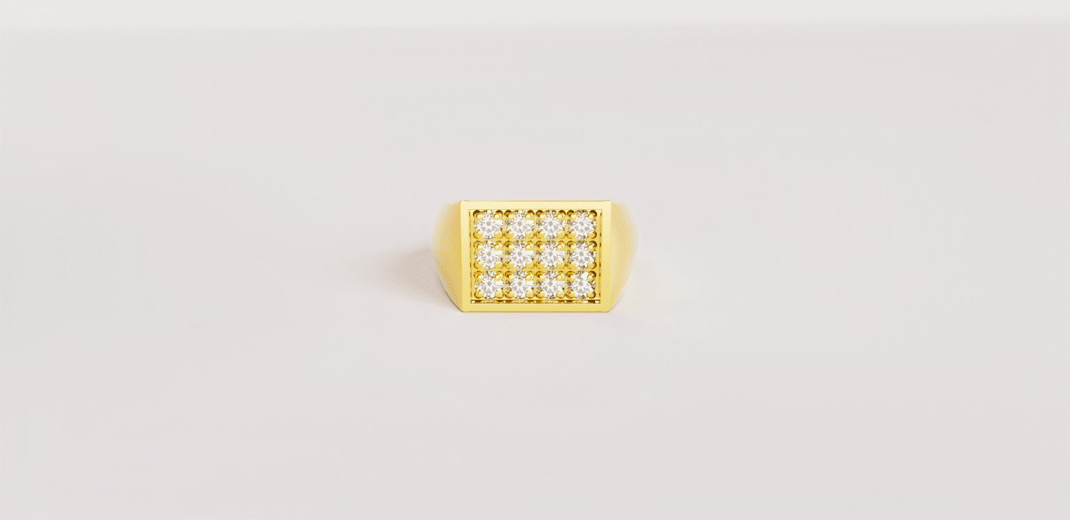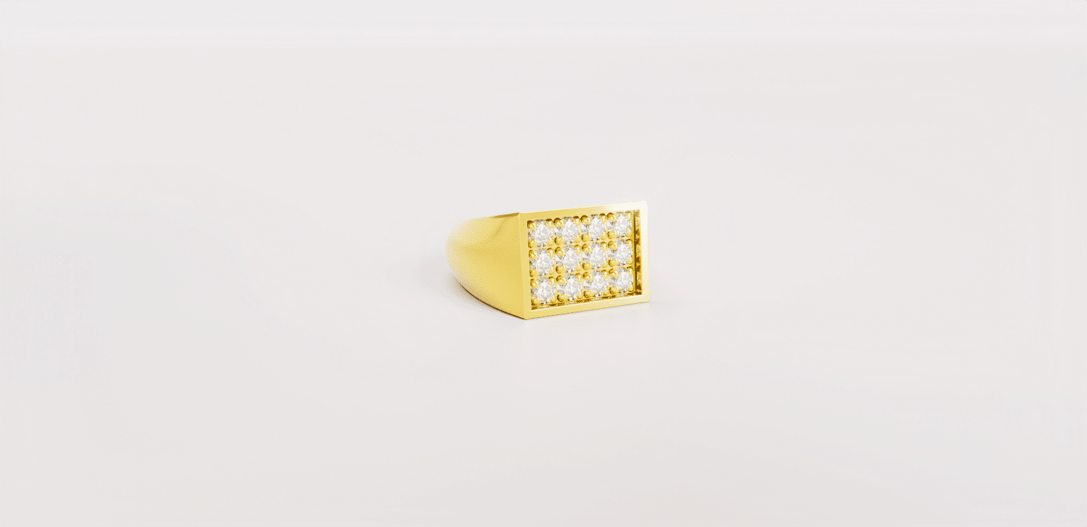 Bold gold signet ring design, featuring a rectangular face set with twelve brilliant round diamonds in a grid pattern for a sleek, modern look.