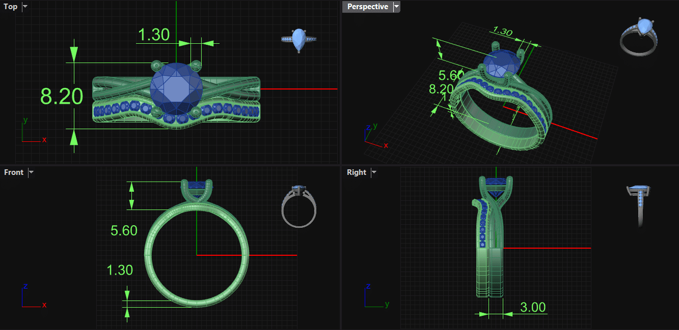 Elegant engagement ring featuring a round center stone, accented by pear-shaped side …