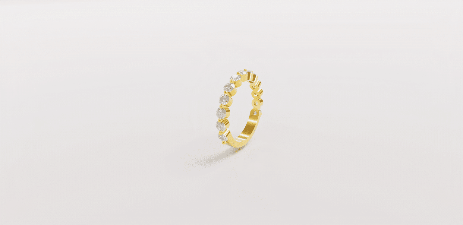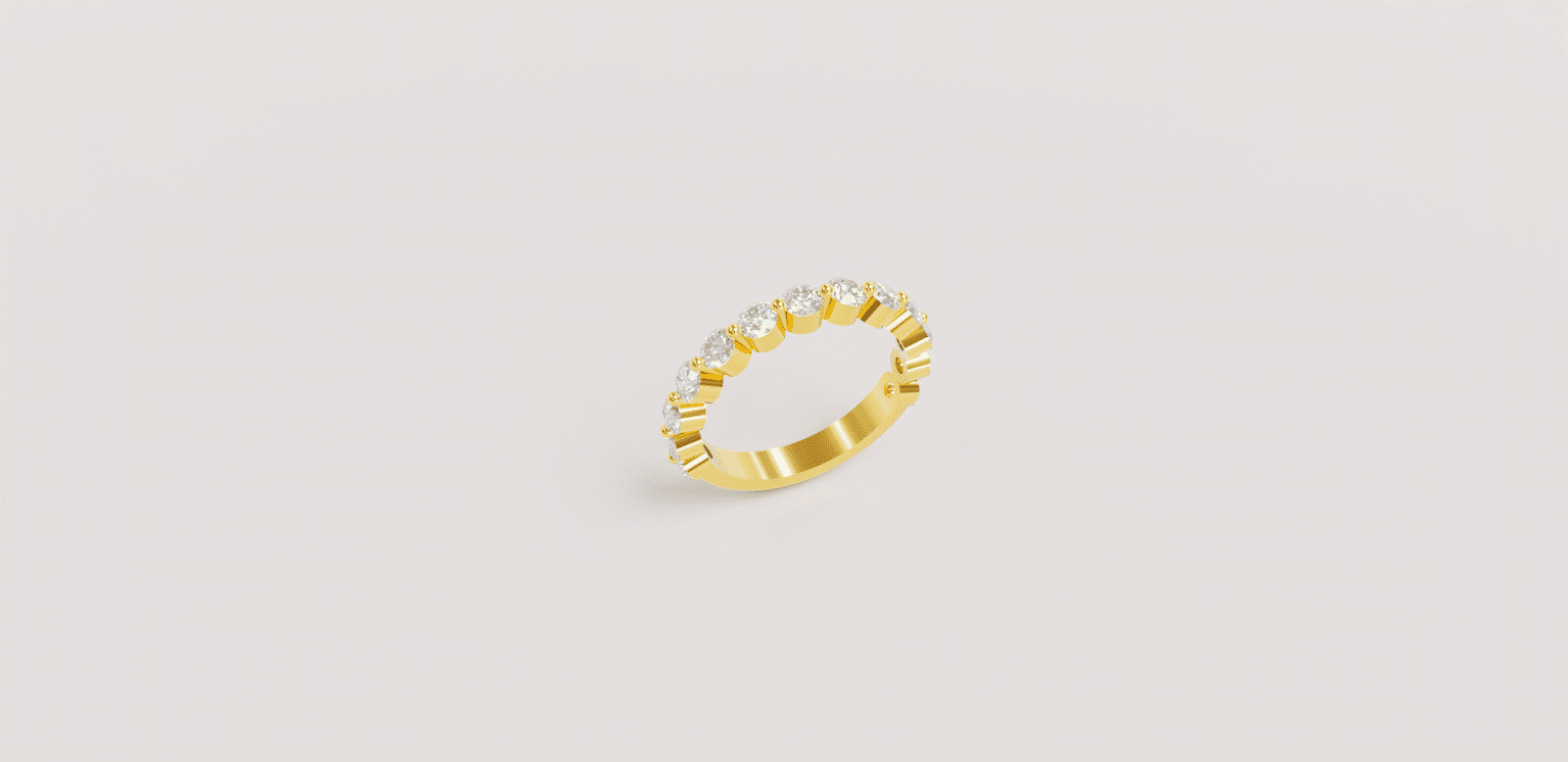 Stylish eternity ring design featuring round brilliant stones in a secure prong setting, delivering continuous sparkle and a timeless, refined look.