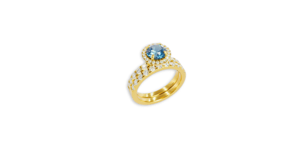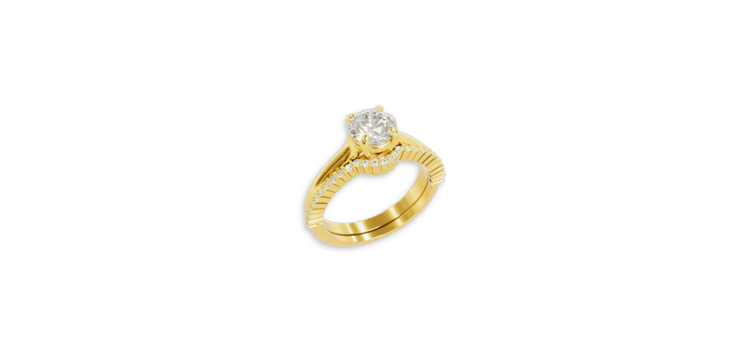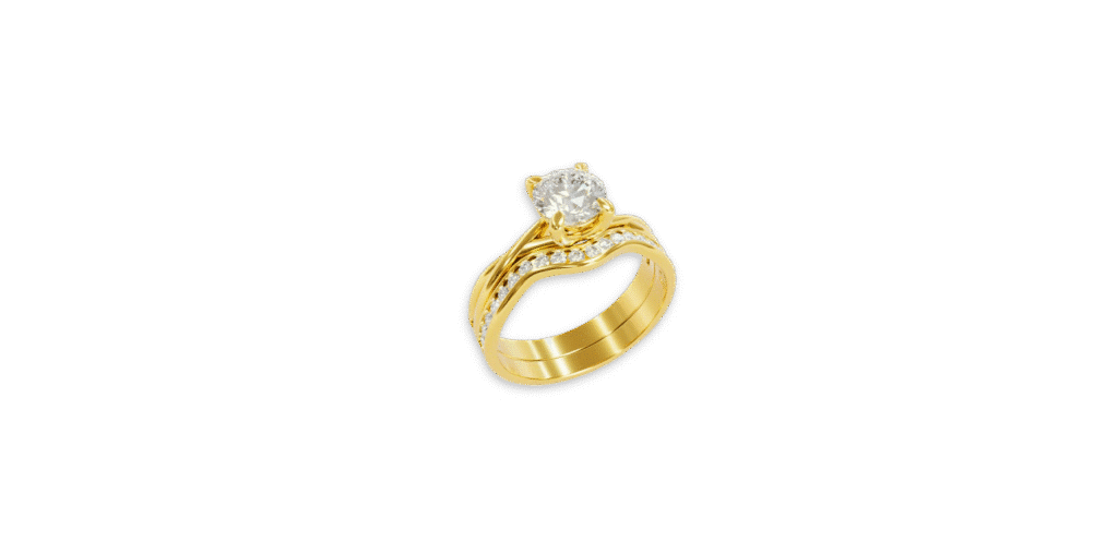 Luxurious ring set featuring a round-cut center stone on an elegant twisted …